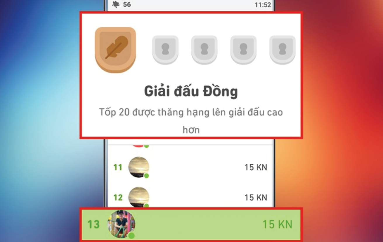 Bảng xếp hạng giúp bạn cạnh tranh với bạn bè để có thể đạt được thứ hạng cao hơn. Bạn nâng cấp thứ hạng bằng việc học và làm các bài kiểm tra. Sau khi lọt top 20 bạn sẽ được xếp vào các nhóm có mức độ cạnh tranh cao hơn