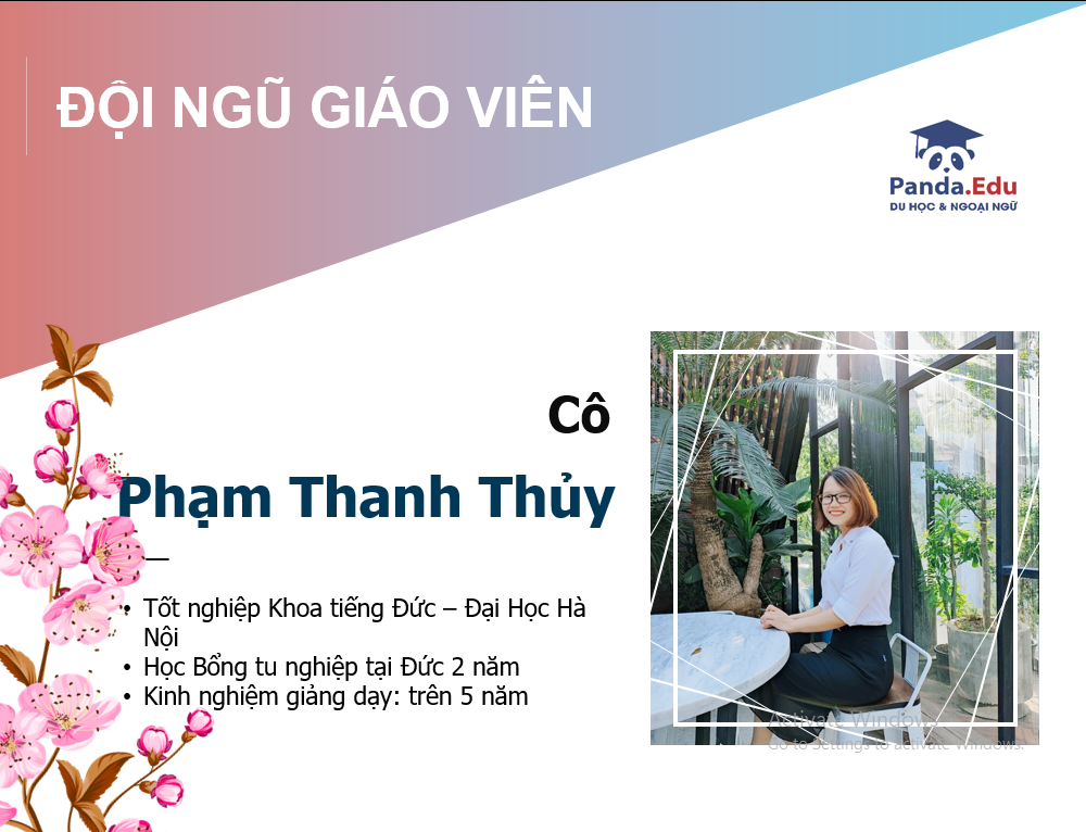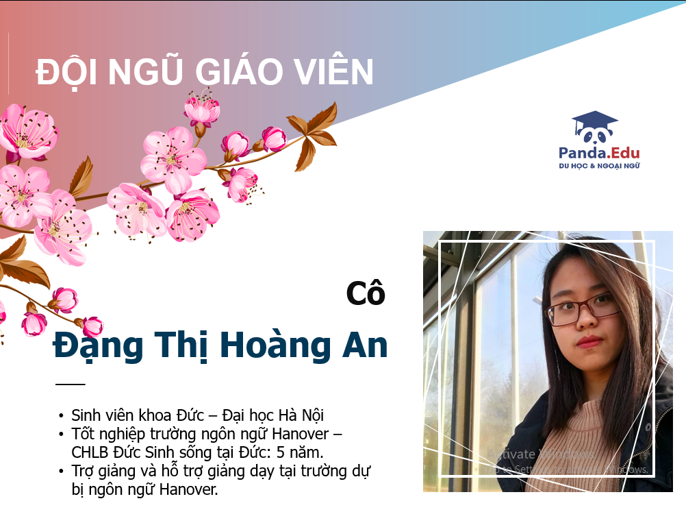 - Cô Phạm Thanh Thủy: Tốt nghiệp Khoa tiếng Đức - Đại học Hà Nội. Giảng viên có hơn 5 năm kinh nghiệm giảng dạy và ôn thi tiếng Đức A1-B1