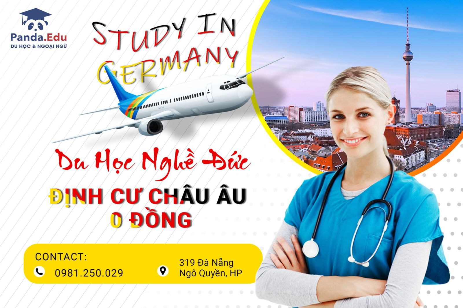 Trường tiếng Đức Panda tự hào là đơn vị chuyên nghiệp đang hợp tác và hỗ trợ các học viên Việt Nam trên hành trình đến với nước Đức này. Trường tiếng Đức Panda trực thuộc tổ chức giáo dục Panda, chuyên về đào tạo ngoại ngữ và tư vấn du học đã có tuổi đời trên 12 năm. Trong suốt hành trình phát triển, ngoài văn phòng chính thức tại Hải Phòng, Panda đã mở thêm nhiều chi nhánh tại khắp các tỉnh thành: Quảng Ninh, Đà Nẵng, Quảng Nam và nhiều tỉnh thành khác. Tâm niệm của chúng tôi là “ Trao đi những điều tươi đẹp ngày hôm nay để đem lại giá trị bền vững cho mai sau”, chúng tôi tự hào đã chắp cánh ước mơ du học cho hơn 2000 học sinh, là đối tác của hơn 2000 trường học/ đôi tác uy tín trên thế giới và tỉ lệ visa lên tới 99%. Các em học sinh và quý phụ huynh nếu cần tư vấn thêm hãy đăng ký qua đường link: https://forms.gle/agHZxtM8E1VReRFW9