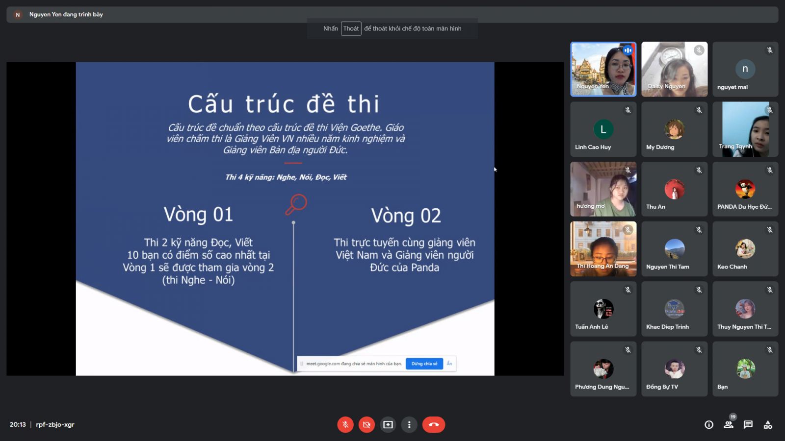 Trong buổi định hướng chúng mình sẽ được giám đốc trường tiếng Đức Panda hướng dẫn chi tiết về ngày thi và được cô Nguyệt - giáo viên chấm thi giải đáp toàn bộ thắc mắc.