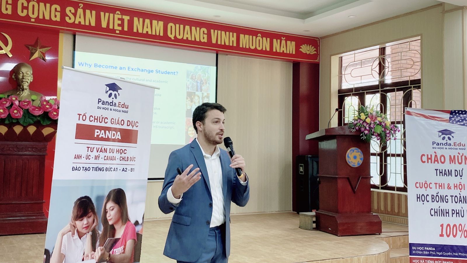 Sau khi kết thúc cuộc thi, BTC đã sắp xếp tổ chức hội thảo cho phụ huynh và học sinh tìm hiểu về chương trình và công bố kết quả. Rất vinh dự được chào đón ông Mr. Jame - Giám đốc Marketing toàn cầu của Tổ chức giáo dục SMG Mỹ đã đến tham dự và giới thiệu về Cuộc thi giành học bổng toàn phần chính phủ Mỹ: